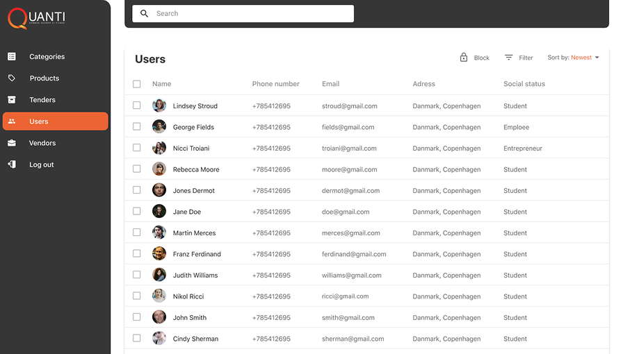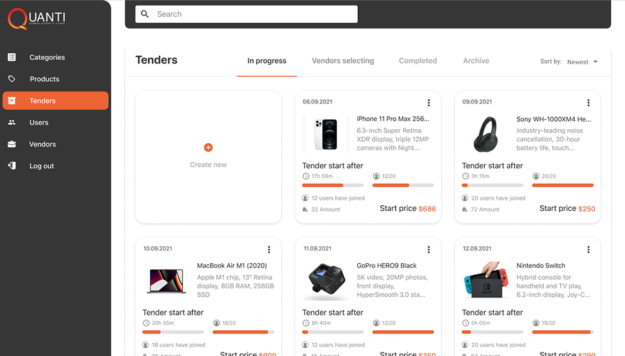 Quanti.dk is a B2B/B2C e-commerce platform designed to enable users to make group purchases or launch tenders for suppliers.